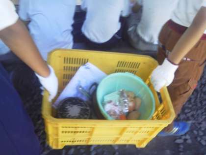 食材や器材を運び、飯盒炊爨の手順や注意点を指導してもらいます。