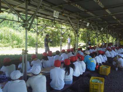 合格した班は、グループの目標を元気に言って飯盒炊爨を開始!