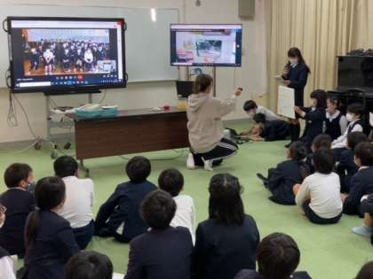 それぞれの学校で作った作品などを送り合ったりしてきましたが、今年は初めて4年生でオンラインを活用した交流となりました。