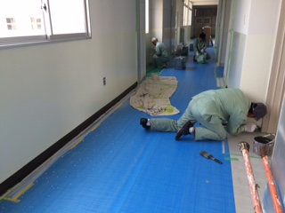 3階6年生前廊下を美しく!(管理作業員による合同作業)