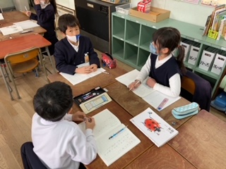 身の回りにある「穴」について、教科書の文を参考にして表現します。