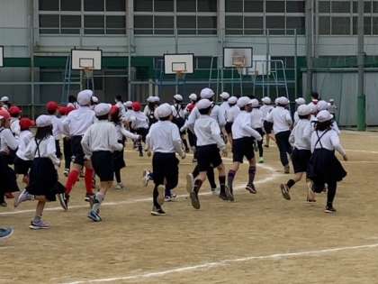 今週は1・3・5年生が15分休みに運動場を走っています。