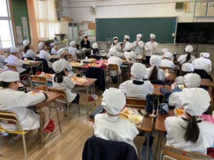給食当番やその他の友達の協力で素早く給食準備が整っていました。