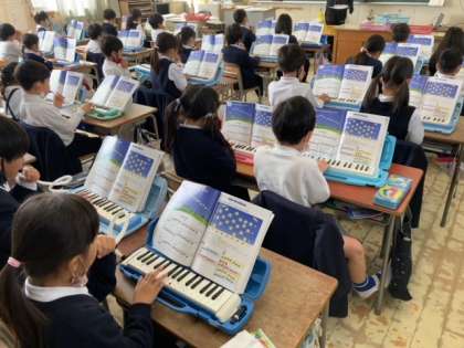 ?鍵盤ハーモニカで「きらきらぼし」を練習しています。