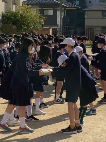最後は、6年生からお礼として、手作りの雑巾のプレゼントと歌の披露がありました。