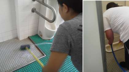 その1、トイレを子どもたちが登校して気持ちよく使えるように掃除しました。