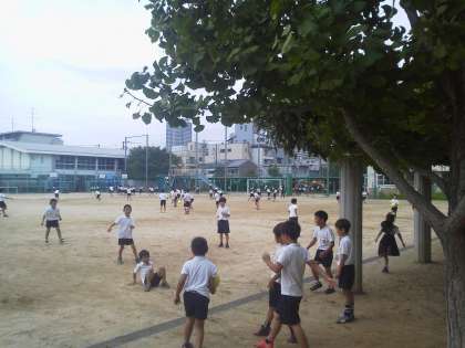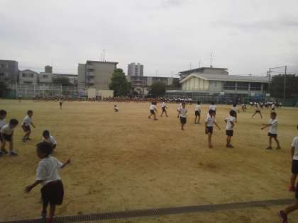 8月31日の15分休憩の様子です。運動場にも子どもたちの元気な姿がもどってきました。楽しく遊んだり、水泳学習の準備体操をしたりしています!