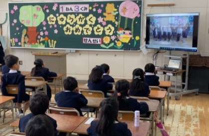 入学式後、各学級で新2年生からの学校紹介の動画を見ました。