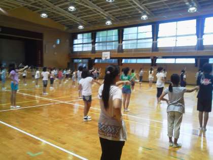 楽器は多目的室付近で、バトンは講堂です。区民まつりや運動会に向け、一生懸命練習しています。