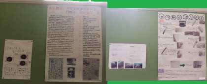 玄関や階段の掲示板、各教室には、夏休みの宿題や自由研究の作品が展示されています。今日は、玄関と5号階段の掲示板の作品をご紹介します。図画や書き方、絵日記、自由研究など力作ぞろいです。この画面で詳細がお伝えできないのが残念です。ご来校の際には、是非ご覧ください。