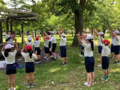 晴天の中、学校を出発し、全員元気に城北公園に到着しました。