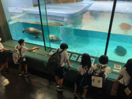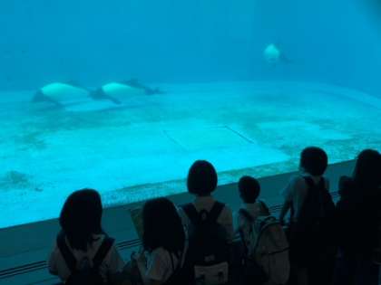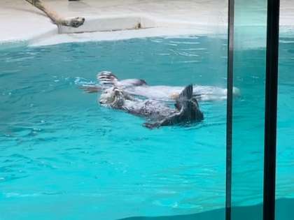 バイカルアザラシ、イロワケイルカ、そしてラッコのコーナーでは、時間をかけて見学するグループが多いようです。