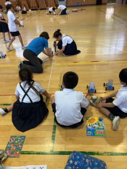 風で動く車作って、風の強さと車が動く距離の関係について調べます。