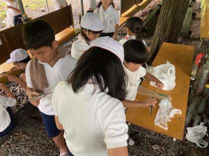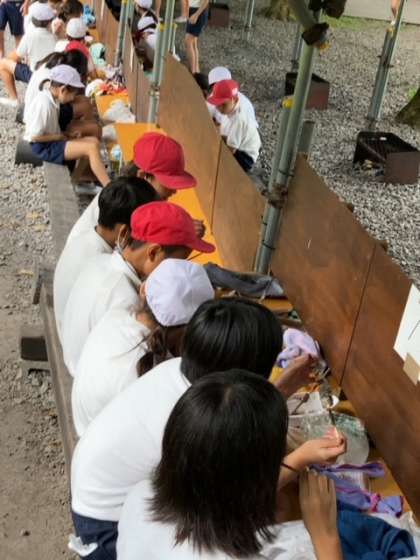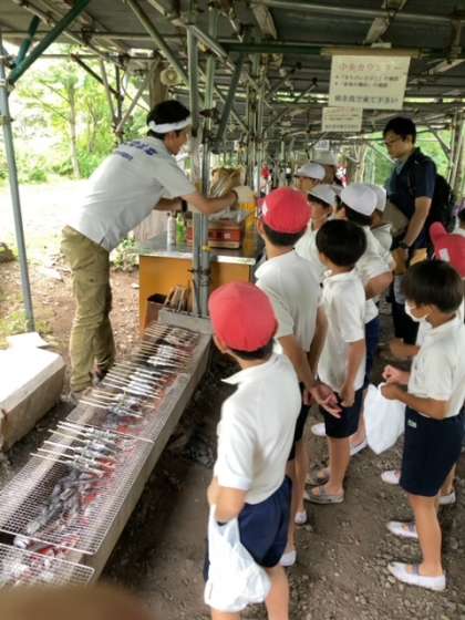 とったアマゴを串に刺して塩焼きにしていただきます。