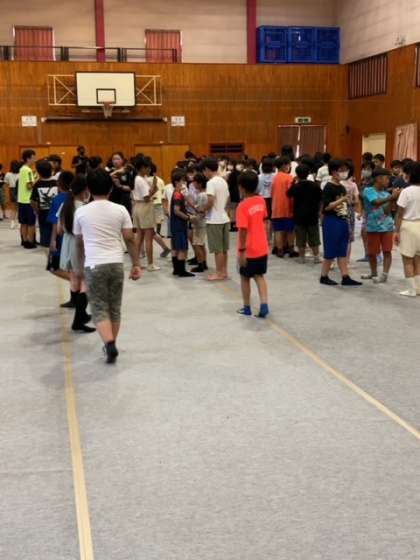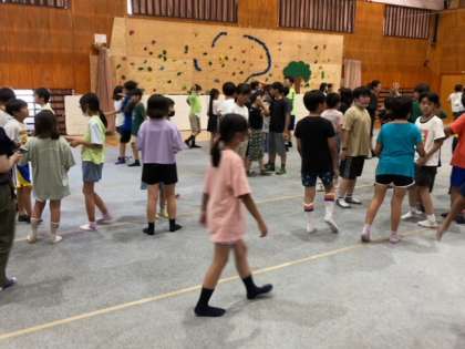 クラスごとに誕生日の順番に声を出さないで並んでいきます。