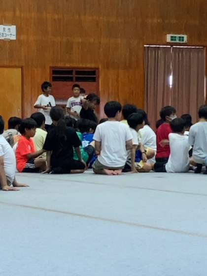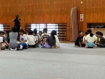 タンバリンをたたいた数の人数でグループを作るゲームです。