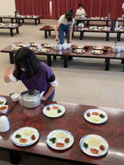 食事のたびに食事係の人たちがみんなのために準備をしてくれています。