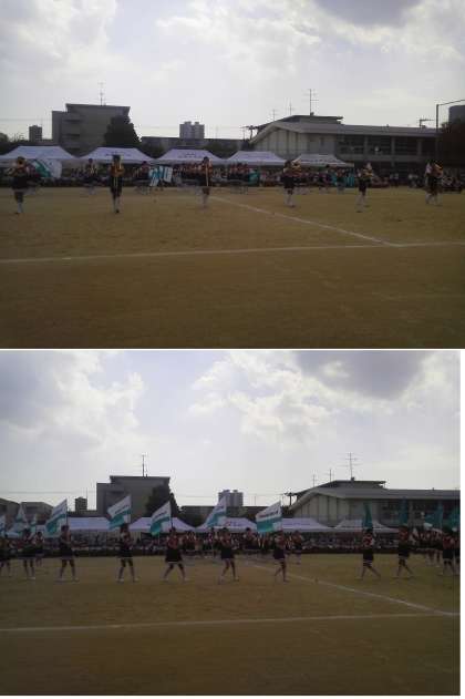 運動会午後の部に先立ち、「高倉連合こども会鼓笛隊」が演奏、フラッグ、バトン、ポンポンなどの演技を華麗に披露してくれました!