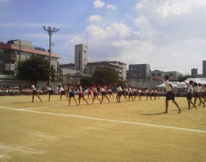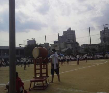 午後の部はPTA会長挨拶に続き、紅白の応援合戦です。応援団の身振りに合わせた応援そして手作りの応援歌を元気に歌い、競い合いました。
