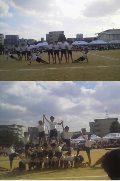 6年生の組体操です。6年生は、全員が力を合わせ、教え合うと共に、それぞれが自分のめあてをもって練習に臨んできました。運動会では、きびきびした動作のすがすがしさ、リズミカルなダンス、そしてグループや全員で呼吸を合わせ形作る美しさを体いっぱいに表現しました!