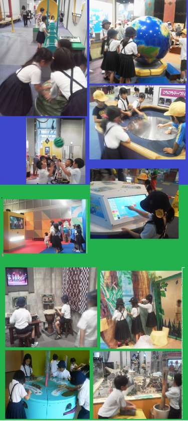 キッズプラザには、科学的な体験、世界の文化に触れる体験、買い物など社会生活に関する体験、ICTを活用した体験など様々な体験遊びのブースがあります。子どもたちはたっぷり2時間、他校の子どもたちともいっしょになりながら、ブースを班で自由に巡り,