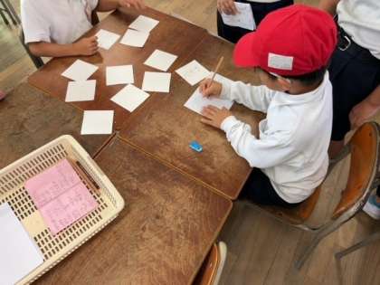 たてわりグループで遊びコーナーを運営し、半分は高学年と低学年でペアを組んでコーナーを回って遊びます。