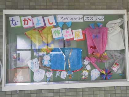 正門の玄関ホールの掲示板は、「なかよし作品展」です。