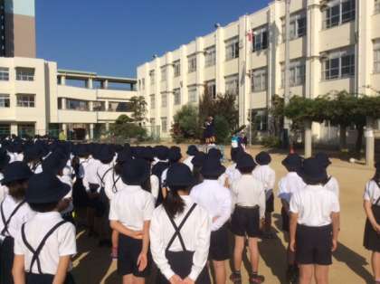 今日の児童朝会で、6年生代表が全校に「思いやり週間」の呼びかけを行いました。