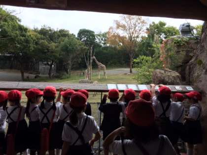 南園をまわって、北園のアフリカサバンナへ行きました。大きなぞうやきりんが見えるとくぎづけになっていました。