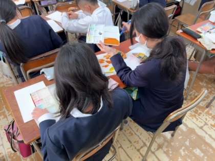 カップ麺の上蓋の一部を切り取り、切り取った部分を自分で描き表します。