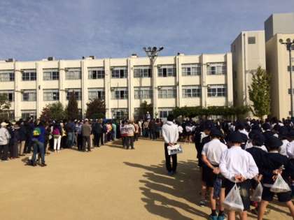 児童が分団に並び終え、今度は児童を見守り待っていてくださった高倉地域の皆さんが、町会毎にプラカードを先頭に、整然と整列されました。