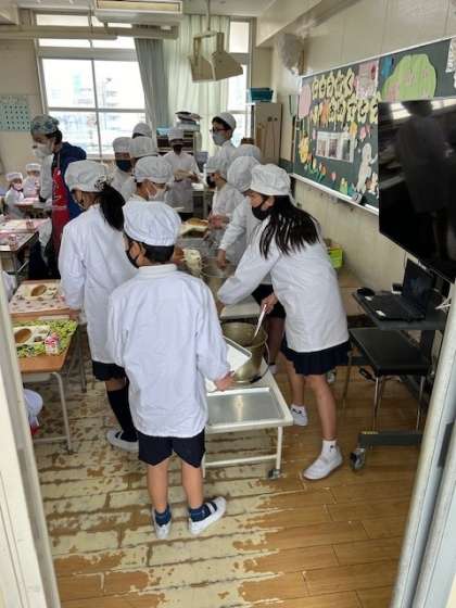 しばらくの間は、6年生が給食の運搬と配膳をしてくれます。