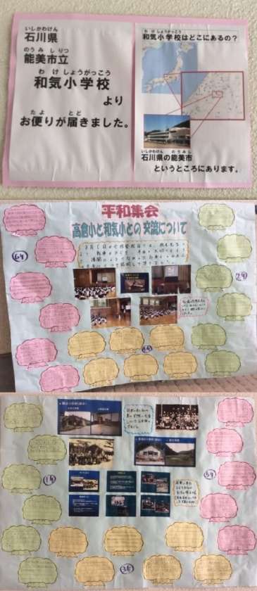 集団疎開に参加した当時の小学生のみなさんが、感謝の気持ちから和気小学校を訪ねたのをきっかけに、和気小学校と高倉小学校の平和を願った交流がはじまりました。毎年、学習の様子等を送り合い交流を続けています。本年度は3年生が1学期に、その他の学年も2学期末にはお便りを送ることになっています。