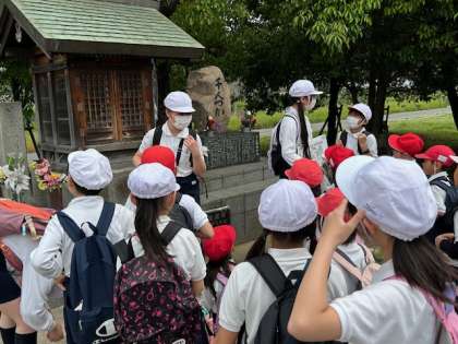 昭和20年6月の大阪大空襲で亡くなった身元不明の方々の慰霊のために建てられた千人塚についての説明を聞きます。