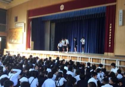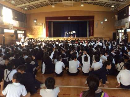 11月11日の児童集会は集会委員会児童の企画による 創立記念日特集のクイズ大会でした。高倉小学校の歴史に関する問題を中心に3択の問題が出題され、子どもたちはキッズファミリー班で楽しそうに相談しながら、1.2.3をハンドサインで示していました。