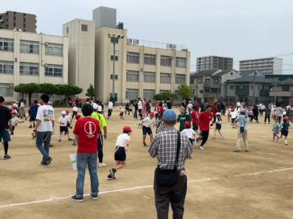 残念ながら、途中で雨が降ってきて全てのプログラムができませんでしたが、みんな楽しそうに体を動かしていました。