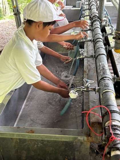 きゃーきゃー言いながらも、大事な命をいただくためにみんな真剣です。