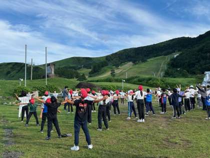 ラジオ体操で目を覚まして、今日の活動に備えます。