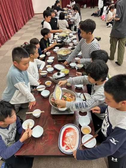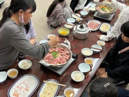 鍋の作り方も2回目となり、慣れた手つきですき焼きを作っています。