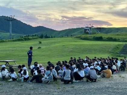 星空観察の前に、涼しくなった高原に出てお話を聞きます。