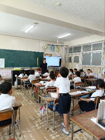 国語です。「ぐりとぐらのえんそく」の音読を頑張っていました。いい姿勢の子が多いです。稲田先生が「今日からここをお家でも音読するんだよ」と説明しました。また、今日習ったところを自宅で復習するという宿題のサイクルが始まります。明日からは、この単元の読み取りが始まり、本格的な国語の授業が展開されていきます。楽しみですね。