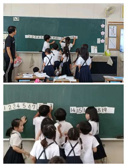 最後は、数字ならべゲームをしました。ランダムに渡されたカードを並べていきます。どのチームも完成し、とても盛り上がっていました。