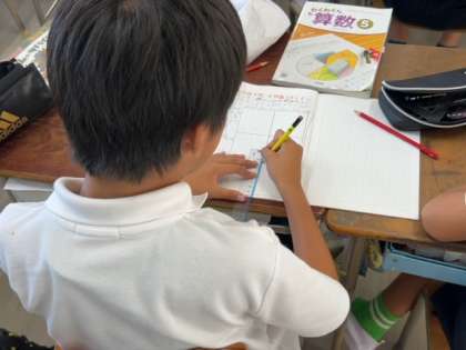 縦18cm、横12cmの長方形内に正方形をピッタリ埋めていきます。一辺何cmの正方形なら埋まるかを考えます。