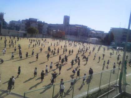 今日の15分休憩も、運動場いっぱいに広がって挑戦していました。