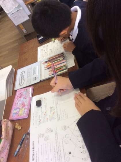 5年んお栄養指導は、「朝ごはんを食べよう」です。朝ごはんを食べることで一日が元気にスタートできることを学び、冷蔵庫や台所にありそうな食材を使って、栄養バランスのよい朝ごはんの献立を考えました。
