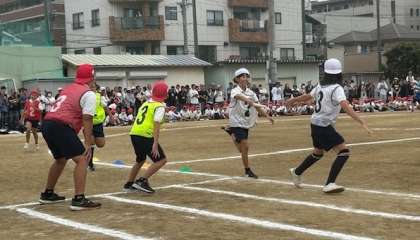 声を出して動きがそろったり、バトンパスを意識して走ったり、高学年らしい演技と走りでした。