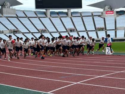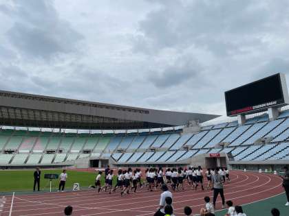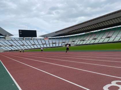 午後はヤンマースタジアムで50m、100m、400mを走りました。