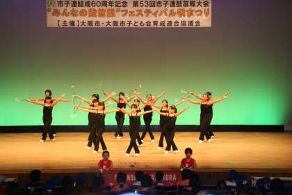 今日は、11月8日(日)大阪市立こども文化センターで開催された、大阪市子連結成60周年記念第53回”みんなの鼓笛隊フェスティバル秋まつり“での演奏や演技の様子をご紹介します。この日も、堂々とした見事な演奏や演技を披露することができました!