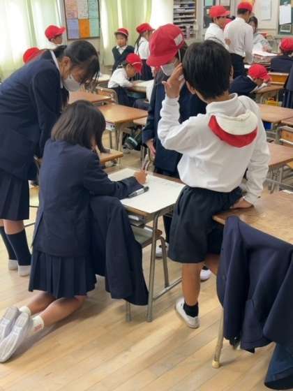 21日(木)に予定している「スマイルキッズパーク」の準備を、キッズファミリー班(たてわり班)でおこないました。遊びコーナーの遊びの説明を書いたり、看板をかいたりしました。