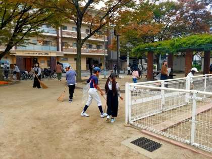 地域ふれあい一斉清掃では、町会毎に集合し、地域の 皆様と共に親子で清掃し、公園や道路を美しくすることができました。日頃から公園や道路を美しく保っていただいている地域の皆様に感謝し、地域の一員として、地域をよりよくするために行動したことは、子どもたちの社会性を育てる上で貴重な体験となったと考えています。